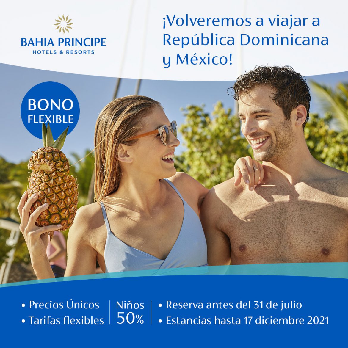 La cadena líder en resorts del Caribe, Bahia Principe, lanza su campaña “Volveremos a viajar a República Dominicana y México” con precios únicos y tarifas flexibles para viajar hasta el 17 de diciembre 2021, permitiendo modificar la fecha de su estadía y el resort elegido.