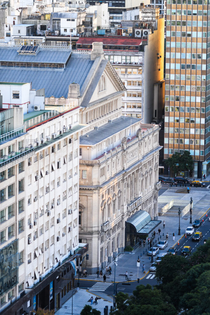 Una vez en la cúspide, las cuatro ventanas del mirador ofrecen una perspectiva completa del cruce de las avenidas 9 de Julio y Corrientes. Desde allí, se puede apreciar el gran trayecto de la avenida más ancha del mundo, el frente del icónico Teatro Colón y la cúpula del Congreso nacional, entre otros grandes atractivos del destino.